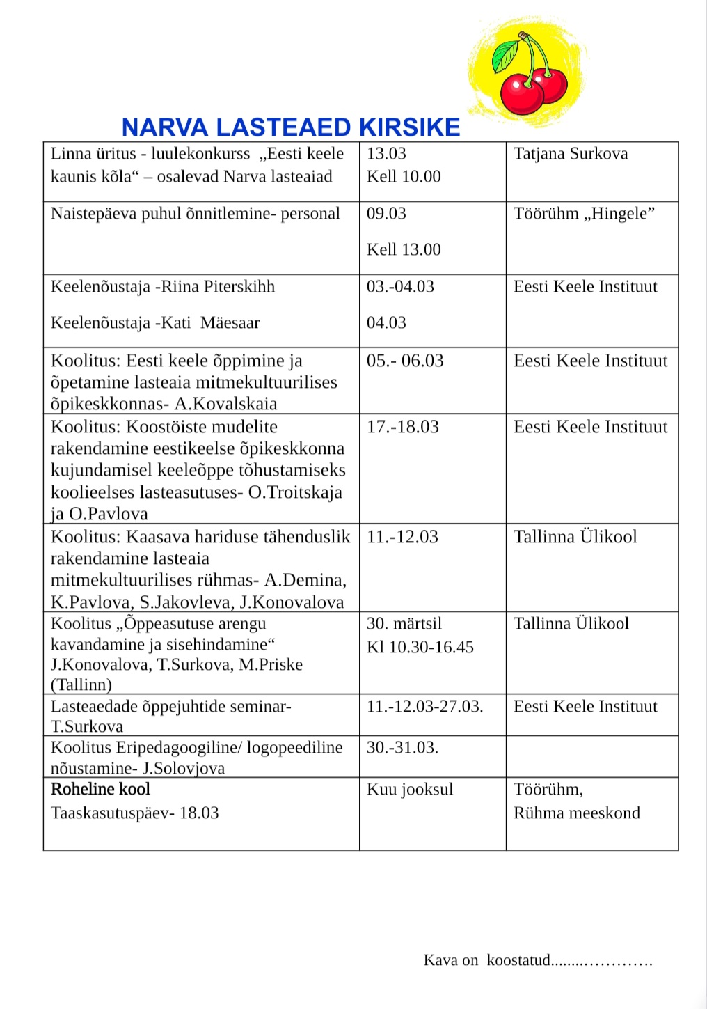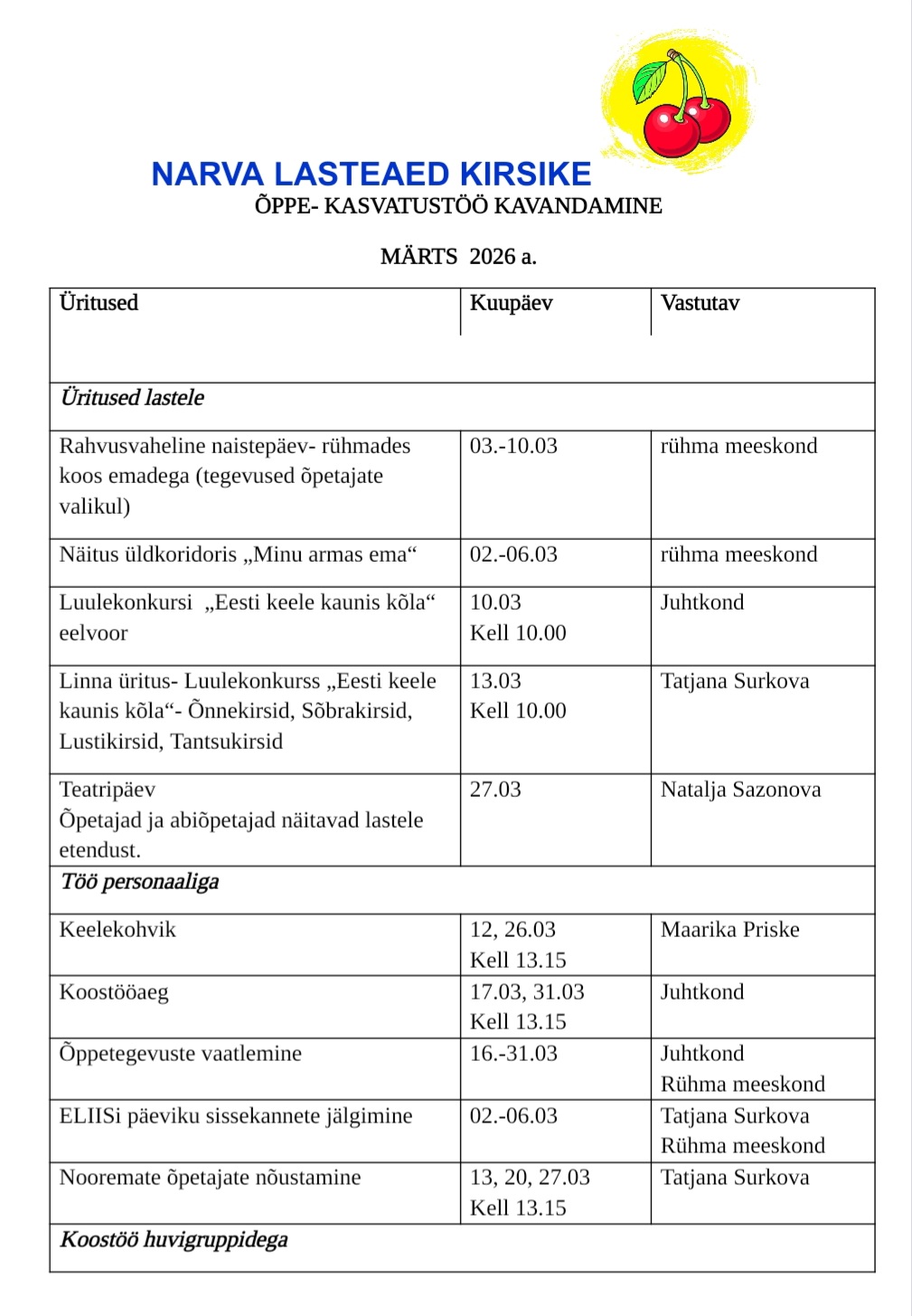 © 2026 Narva Lasteaed Kirsike Veebileht töötab ka tahvelarvutites ja nutitelefonides
