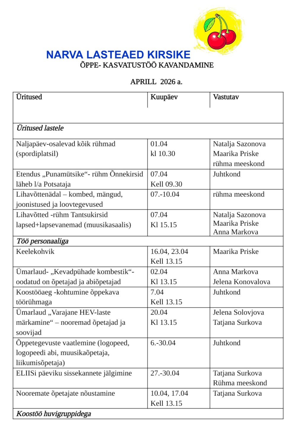 NARVA LASTEAED KIRSIKE
